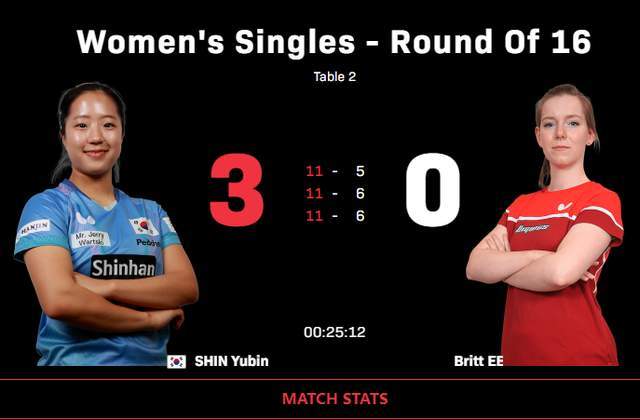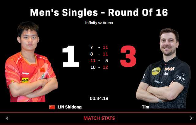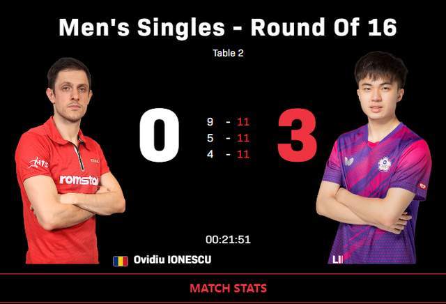 中国台北林昀儒 3:0 罗马尼亚约内斯库