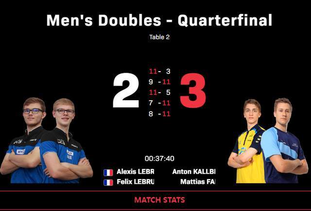 法国A·勒布伦/F·勒布伦 2:3 瑞典卡尔伯格/法尔克