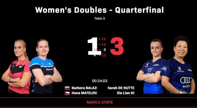 捷克马特洛娃/斯洛伐克巴拉佐娃 1:3 卢森堡倪夏莲/德努特
