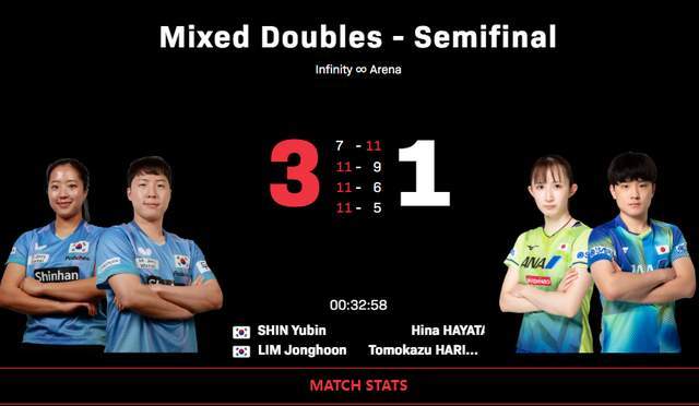 日本张本智和/早田希娜 1:3 韩国林钟勋/申裕斌