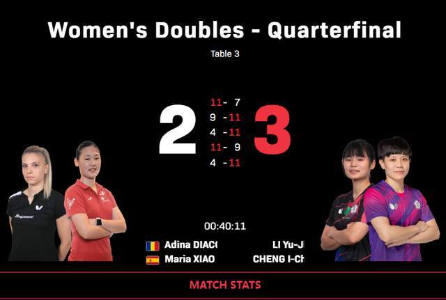 中国台北李宇谆/郑怡静 3:2 罗马尼亚迪亚科努/西班牙肖遥茜
