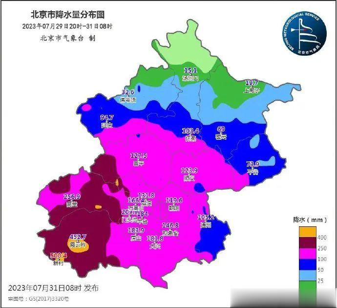 亚新捕鱼英雄联盟外围博彩网站 据@得意北京7月31日6时发布预告,今天白日大雨到暴雨,西部大暴雨,东风三四级,阵风六七级,最高气温26℃;夜间中到大雨,局地暴雨,东风三级左右皇冠十三水APP下载,最低气温24℃、暴雨红色、雷电黄色、大风蓝色预警中,今天白日至8月1日暴雨到大暴雨,局地雨强较大,伴六七级阵风,堤防防雨防风和交通安全,山区防线质灾害。 英雄联盟外围博彩网站7月29日20时至31日8时,北京地区全市平均降雨量140.7毫米,城区平均143.5毫米,房山区平均298.4毫米,门头沟平均277.9毫米;最大降雨出当今房山新村,500.4毫米;最大小时雨强出当今大兴庞各庄,31日7-8时65.8毫米/小时。(因通讯基站故障,房山北窖等11个得意站、昌平菩萨鹿得意站数据未更新。)