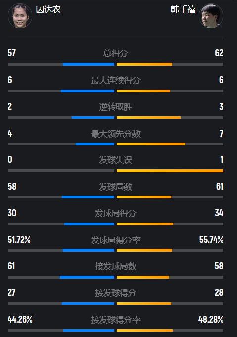 【比赛看点】 狂热手脚13年的世锦赛女单冠军,巅峰时刻的因达农,寰宇名次一度高居第一,不外近几个赛季的景色下滑昭着,当今的名次也曾下滑到了第10位,但仍然比排在34位的韩千禧向上不少。 无论是从实力和大赛训诫来看,因达农皆有着昭着的上风,但韩千禧也有着我方的所长,那便是年青和主场上风,能否在二人干事生计初度碰头中,打出初生牛犊不怕虎的声威,在主场顺利爆冷,也就成为了这一场比赛最大的看点。 伸开剩余67%